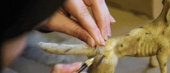 人偶和狗狗身上的每一根毛发都是设计团队精心粘贴上去的。