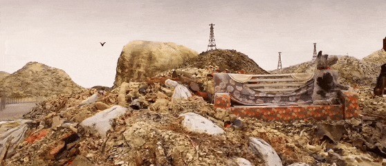 随着他们的步伐,场景不停变换,不变的是对称的构图和令人舒心的配色。在安德森的世界里,垃圾的颜色也是美的。